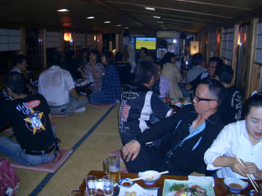 なんとも粋なオハナシですよね! 江戸時代より続いている伝統と歴史あるこの隅田川の屋形船に、ロック野朗達が乗り込んでしまったらはたしてどーなるのか?? このアンバランス感がかえっていいぞ、オモシロそうだぞ! とは言えども・・・・待てよぉ〜一般人からみればただでさえというか、何となく威圧感がある方々ですので、そーなるとやはり乗り合いっていうワケにはいかないし、貸切でいく他ございませんでした。 とは言え我々大人のニッポンジンであります。見かけとゼンゼン違って、皆様キレイな飲み方をされる方々ばかりなのでございます。TOKYO屋形ナイト VOL.1・・・・今回のこの宴会は生涯、忘れる事がないほど、インパクトのある楽しい宴会となりました!! ご参加頂きました方々、どうもありがとうございました。またいつの日かやりましょうね。その時は今回、参加できなかった方もぜひ!! もはや夏の面影も薄く、関東地域も秋の気配を感じるようになりました。季節の変わり目ですので、皆様カゼにはくれぐれもお気をつけください。 |