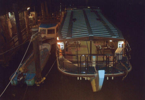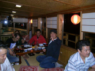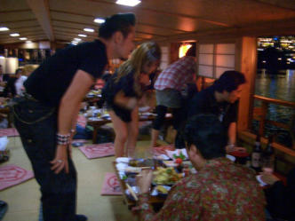 | いよっ、我等の宴会部長! 伊藤氏がカンパイのオンド! | 江戸時代より続く、歴史ある隅田川の屋形にロック野朗達が。 いいんです、それもありなんです! |