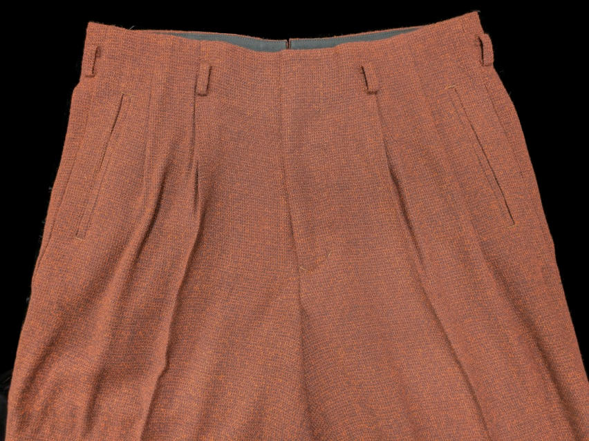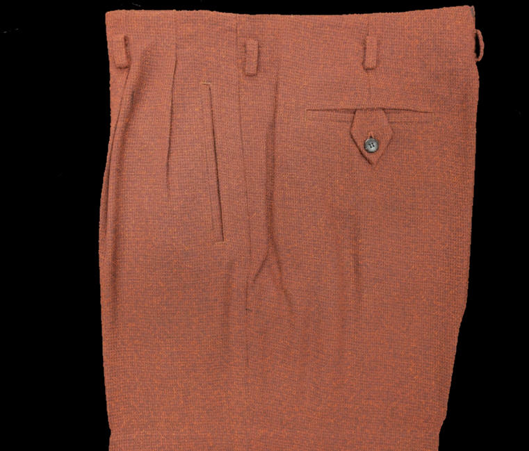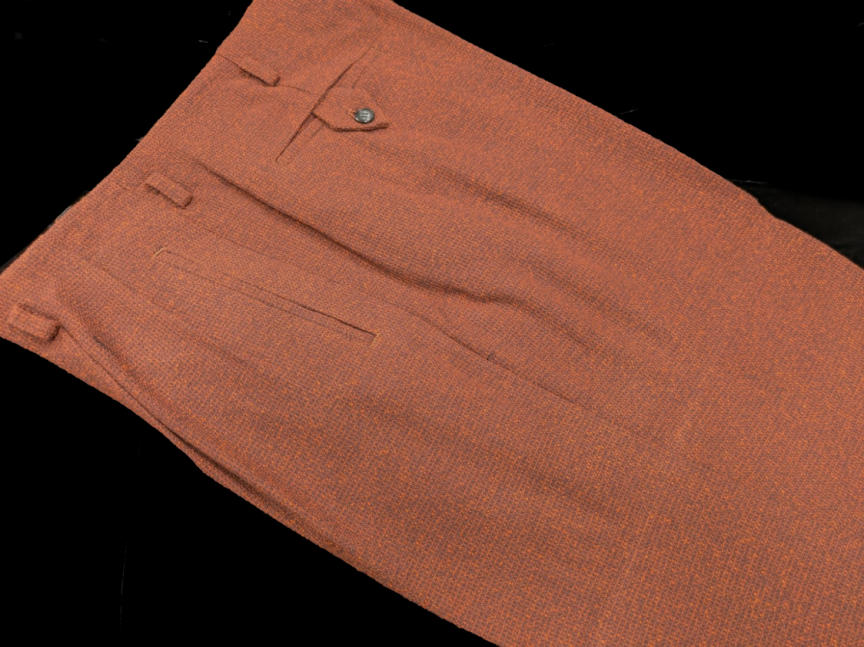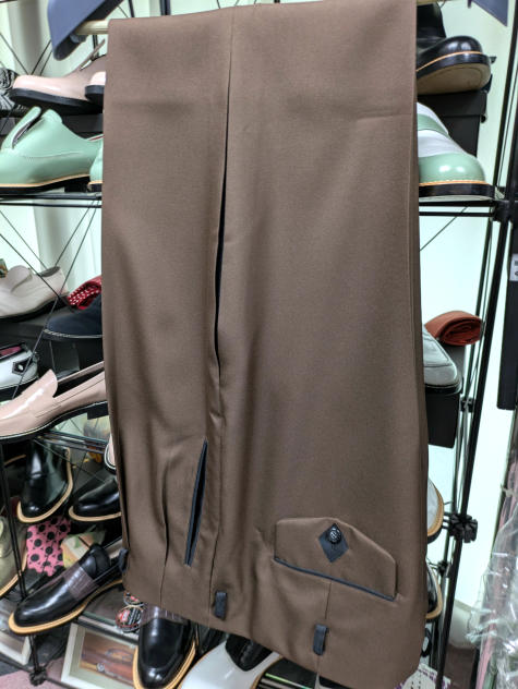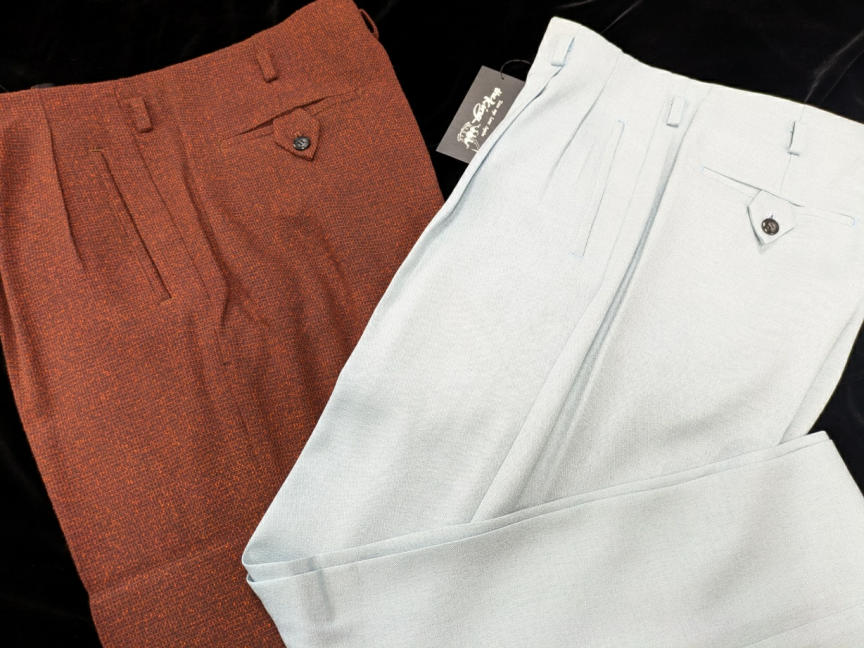 今回の新作はロックンロール・パンツ。このところ「セミ・オーダー・ナッソー」の豪華絢爛たるページばかりチェックしておったが、やはりThe-Kingは特別企画だけでなくお仕事の本道もしっかりと!冬の到来に合わせた厚手のマテリアルの気品を活かしたグッド・クオリティ!写真では綺麗にプレスが効いておるが、仮にプレスが多少弱くてもマテリアル表面の“立ち具合”がノスタルジックな50sワールドへ誘うような魔力があるように見える!またパンツにフィットするナッソー・ジャケット、イタリアンカラー・シャツ、ロックンロール・シューズも瞼の裏側に浮かび上がってくる。このロックンロール・イマジネーションが雑念なくナチュラルに広がるのもThe-Kingアイテムの魅力じゃ。まさに「“逆”自己免疫疾患」的効果じゃ!