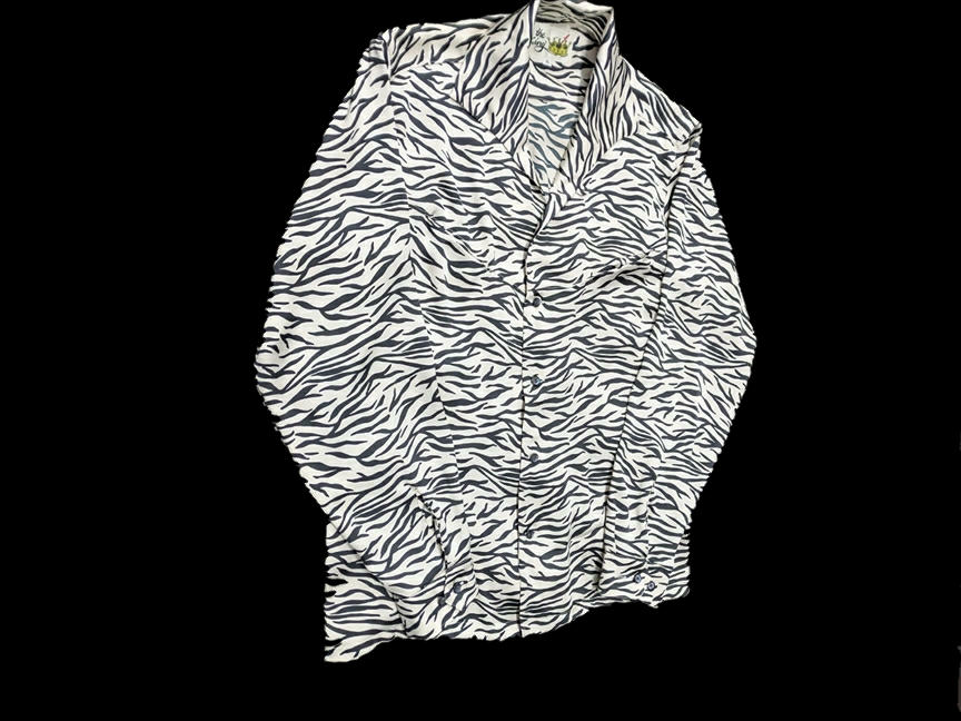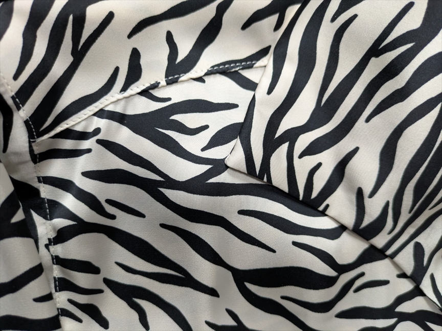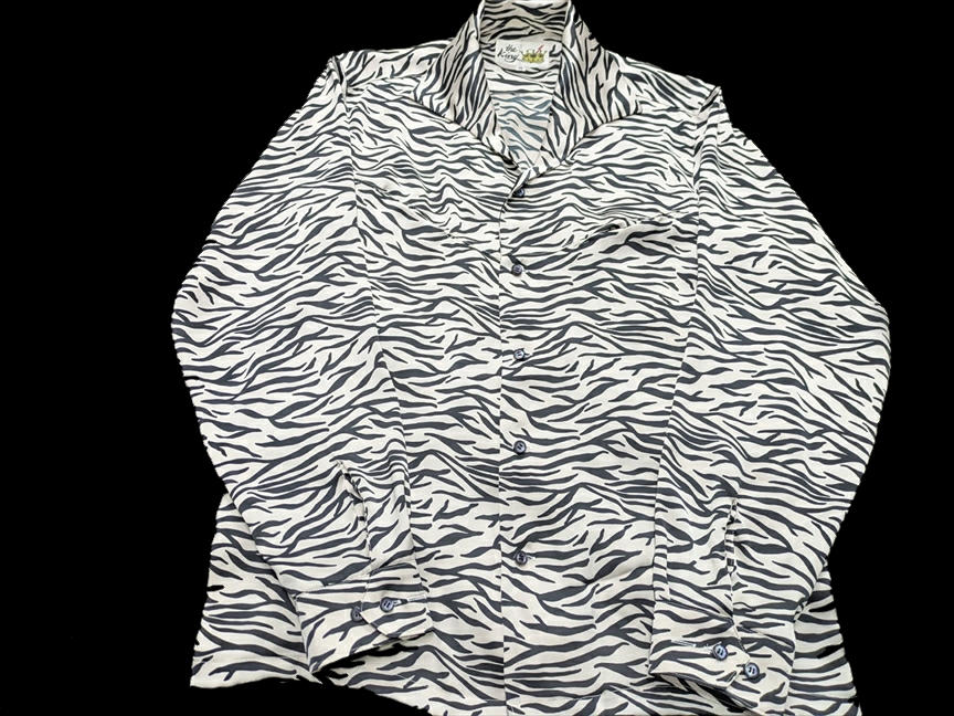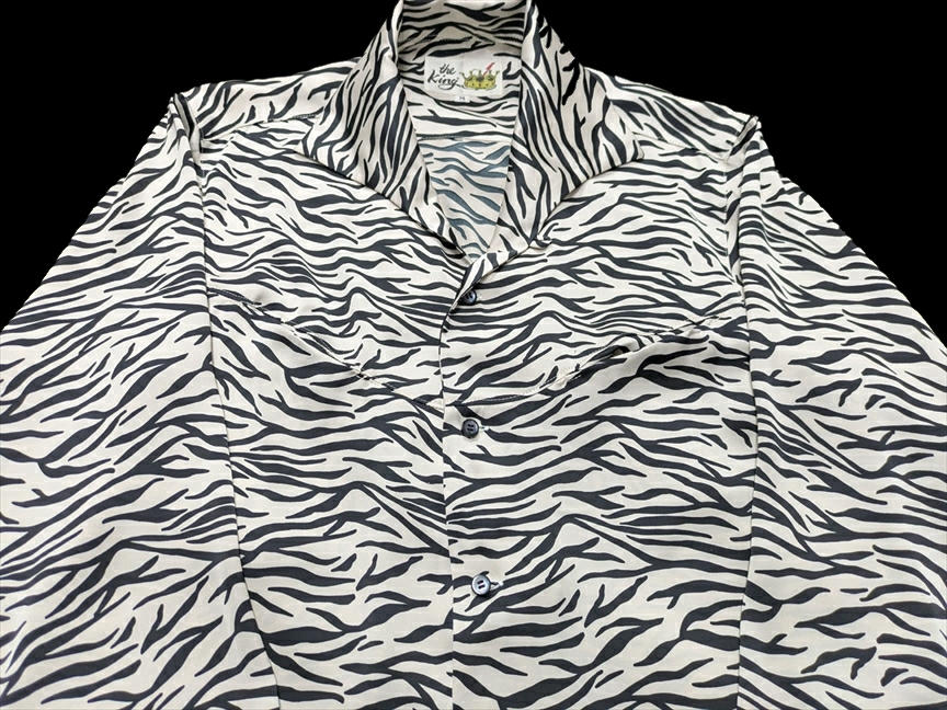 遅っ 違いますね。こちら、由緒正しきゼブラシャツ。なんといっても、ロッキンローリン、アトミックデザインのフィフティーズデザイン界においては、インテリア、ファッション、どちらももてはやされた、王道のひとつがゼブラ柄っすよ。THE