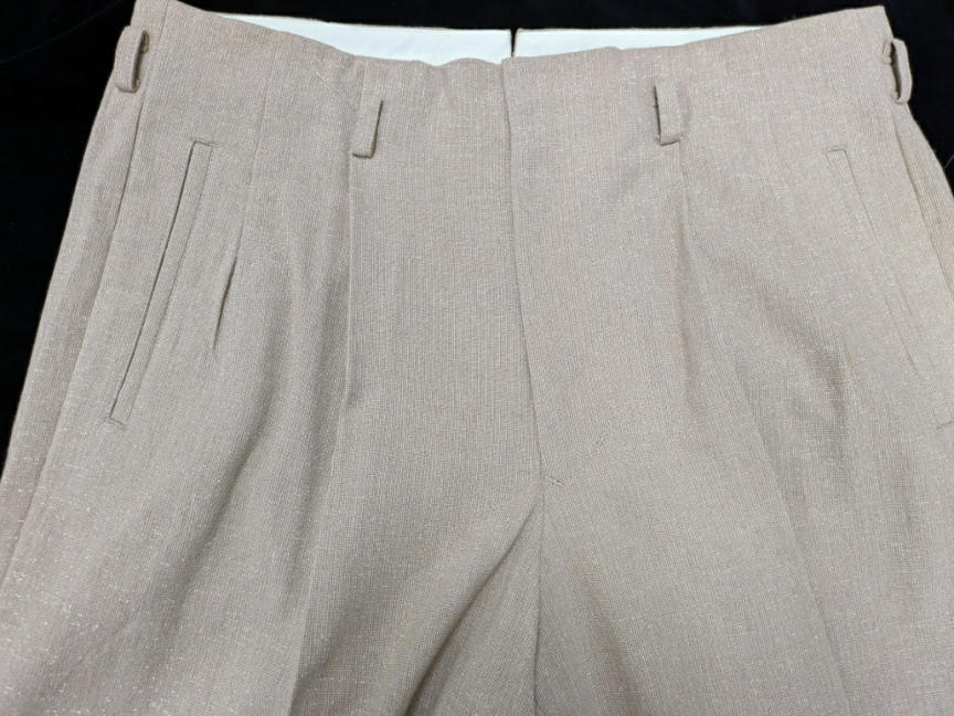 それ以上に、わしは「カムバックスペシャル68」の〆で「明日への願い」を熱唱した時のエルヴィスが着ていたホワイトスーツを想起した。つうか、もしこのゴールドラメ入りアイボリー・マテリアルによるスーツじゃったら、エルヴィスは神に見えたに違いない!なんて妄想に耽ってしまったわい。1ミリたりとも、ほつれた糸1本たりとも無駄にしたくないようなこの神マテリアルは、パンツ製作終了時に余りが発生したら、ソイツを細切れにしてThe-Kingサイト閲覧者サービスにして大炎上!ってのはわしのおバカな空想なんて、これはスルーしてくれ(笑)