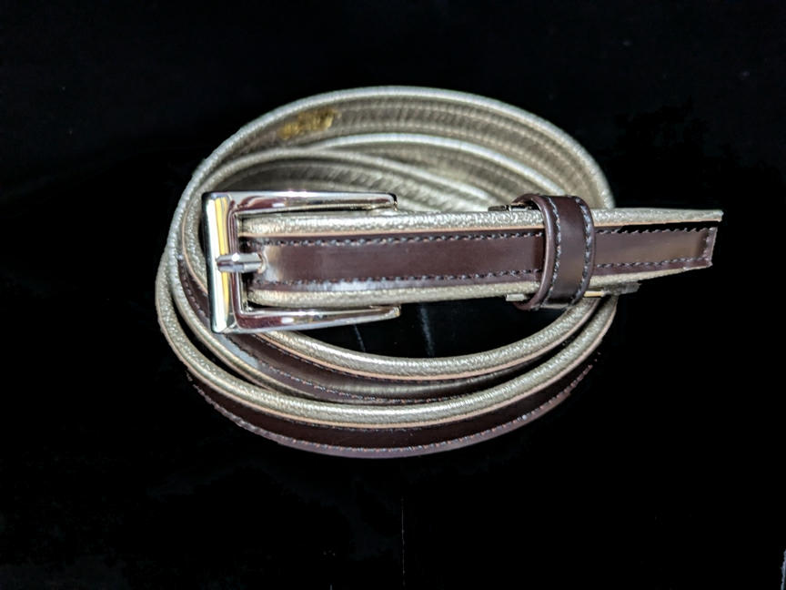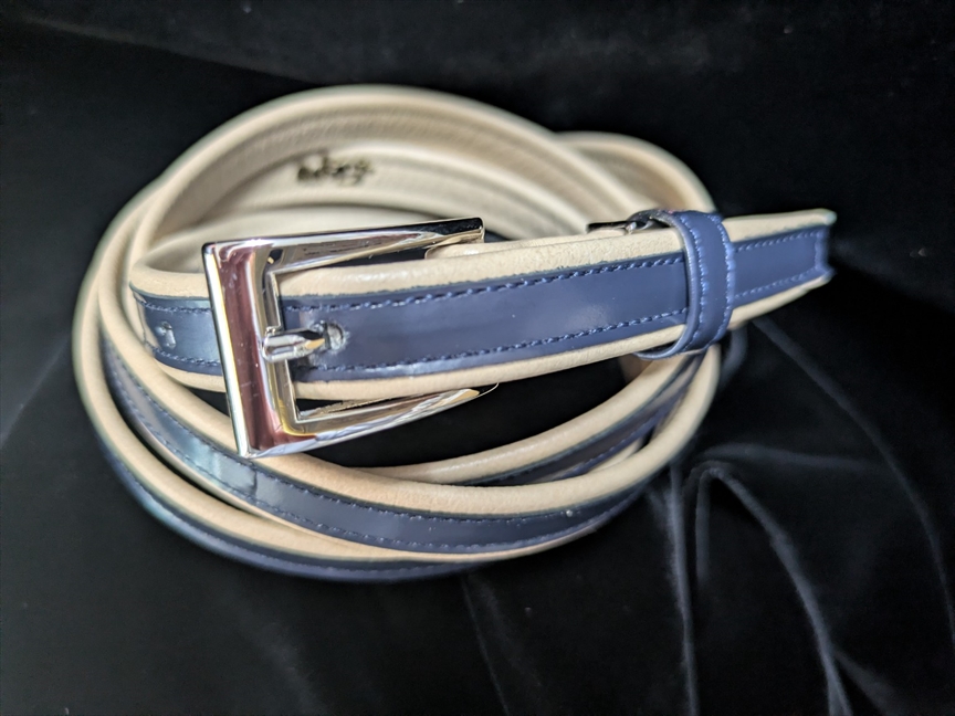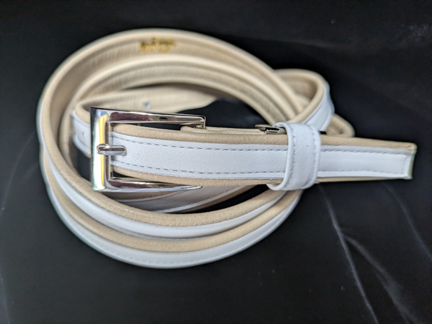 スキニーベルトにおいては、幅が狭い事からスキニーであり、15mmくらいの幅が(inchだと0.6)やはり最もセクシーで理想形だという事にたどり着いたのは、2003年の頃でした。ここでの更なるこだわりは、それがスキニーになればなるほど、生産が難しい"切り替えベルト"としてリリースしたいという相当ワガママな考えであった。