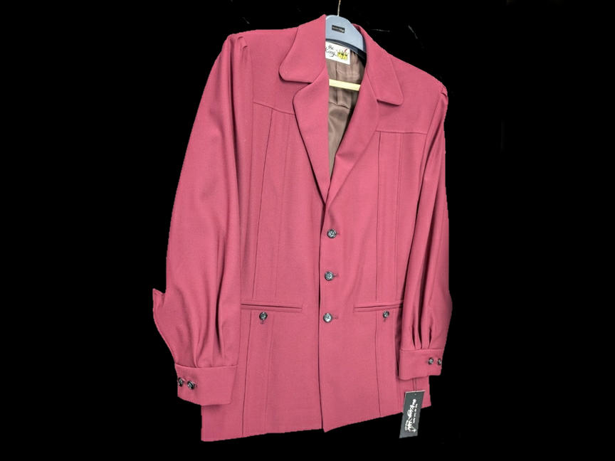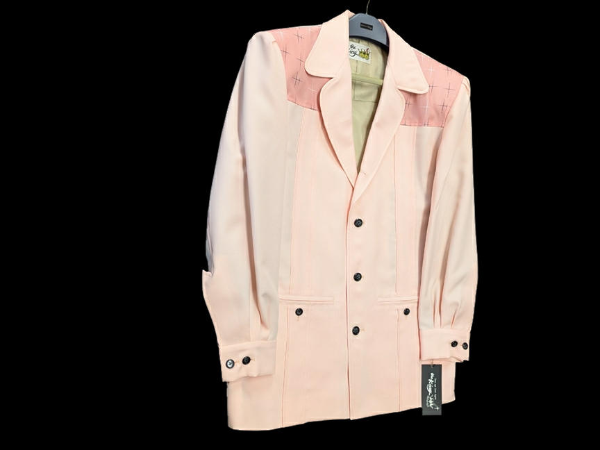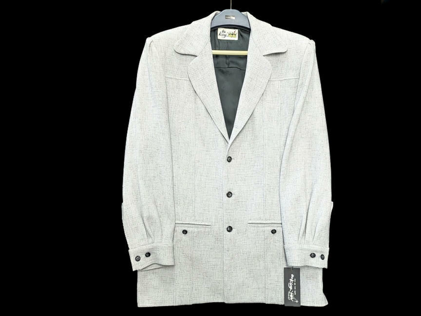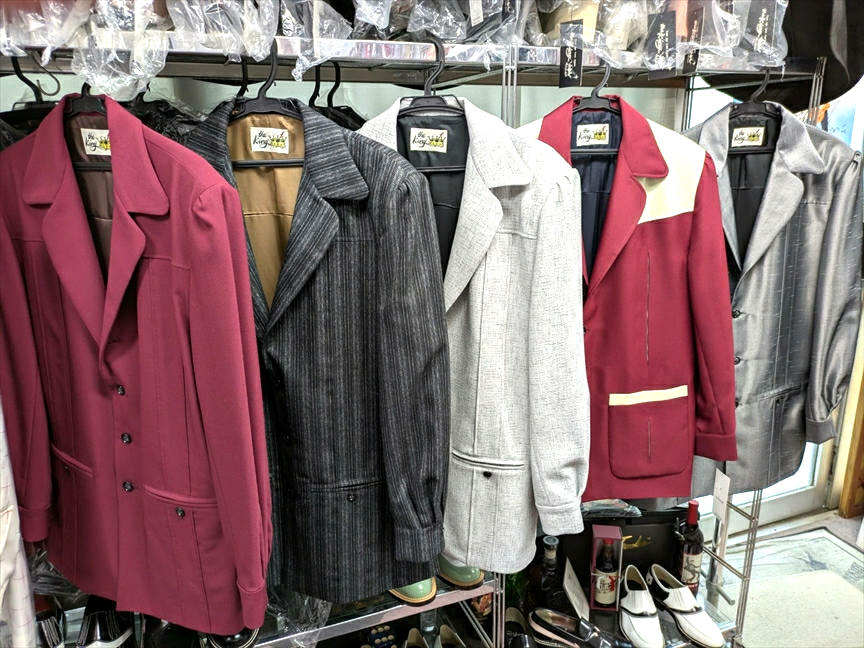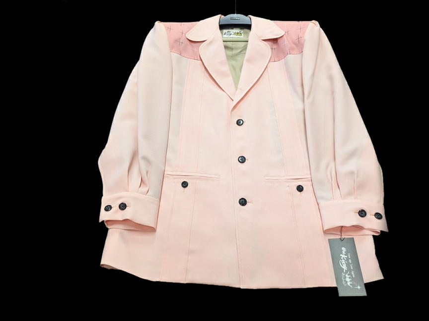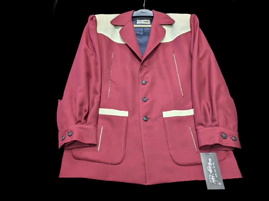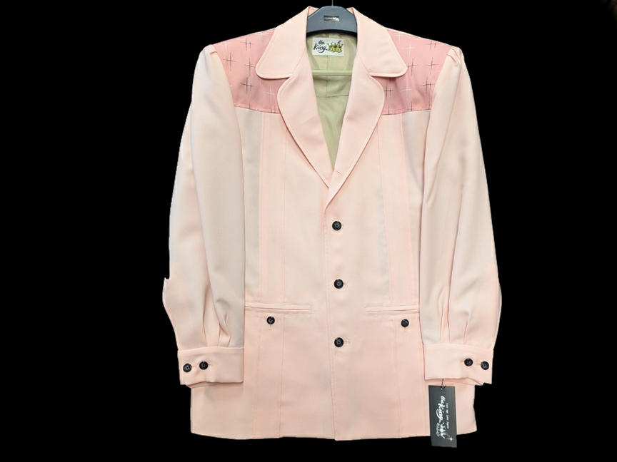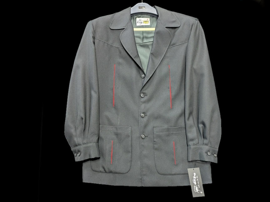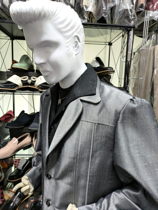 ナッソーは言うまでもなく50年代のエルヴィスの戦闘着(ステージ衣装)&オフ用ジャケ。ハイクオリティ・マテリアル&カッティンデザインながらラフに羽織ることが最大の着こなしのポイントであるだけに、エルヴィスの着こなしを見た大人たちははきっと“デヴィルズ・ジャケット(悪魔のジャケット)”と呼んだに違いない!まさに50年代のエルヴィスの真のヤバさを象徴する代表的ファッションじゃ。