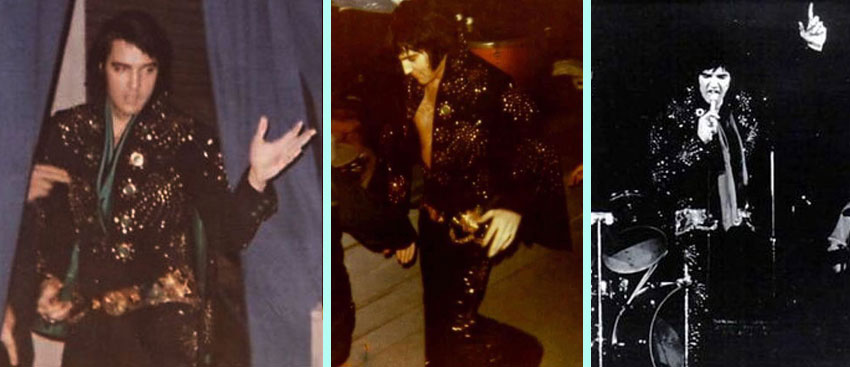 細部にエルヴィス出演時の痕跡が残っている現役のライブ会場![]() ![]() 20年半前は当地スポーツ・アリーナにおいて、エルヴィスはライブ史上初めてゴールド・ジャケットを着用した。これはバーナード・ランスキー製であり、後のヌーディーズ製のモデルにもなったタイプじゃ。(「バーチャル2023年オハイオ州後編」Area No.6参照」) 1956年のライブが話題性豊富だったためか、1977年のトリードでのライブ(センテニアル・アリーナ~上写真)の情報は、ネット上でほとんど見つからない。ステージ写真のエルヴィスも疲れ切った様子のショットばかり。着用していたジャンプスーツは、1977年のツアーで頻繁に着用されておった通称“エジプト・サンダイヤル”であり、他のライブとの見分けも付きづらくて困ってしまったわい。その代わり!?、ライブステージに上がる直前のショットが3枚ほどネット上で拝めるのでご紹介しておこう。(下写真3枚)