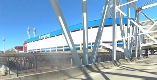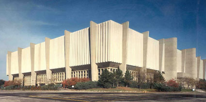 ![]() ![]() エルヴィス、フランク・シナトラ、ボブ・ディランらビッグ・アーティストたちのライブがセンテニアル・アリーナ開場直後から次々と開催され、メインのスポーツ・イベント開催とともに、オハイオ州内の重要なコンサート会場として現在でも稼働中じゃ。現在の名称はサベージ・アリーナ。右写真右側はストリートビュー2023年6月撮影。 |