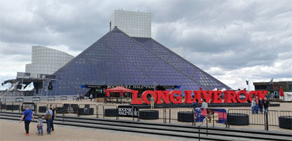![]() ![]() ![]() ごく一般的にも有名な「ロックの殿堂」。その本部/展示博物館はオハイオ州クリーブランドにあるのじゃ。正確にはエルヴィスゆかりの地ではないが、思い起こせばエルヴィスは殿堂入り第1号の一人であり、ロックの殿堂はグレースランドと提携しながら定期的にエルヴィス関連の品々の展示会を開催しておるので、特別に「バーチャル~」にカウントすることにしよう! 「ロックの殿堂」とは、ロック音楽の歴史、およびその発展に影響を与えたアーティスト、プロデューサー、エンジニア、その他の著名人や人物が表彰され、博物館に関連アイテムや資料を展示する組織」である。設立及び表彰は1986年であり、博物館が開館したのは1995年。メンフィス、フィラデルフィア、デトロイト、シンシナティ、ニューヨークらが殿堂博物館招致合戦を繰り広げ、最終的にクリーブランドに決定した。 1986年の第1回目の殿堂入りアーティストは、エルヴィス他、チャック・ベリー、ジェームズ・ブラウン、レイ・チャールズ、サム・クック、ファッツ・ドミノ、エヴァリー・ブラザーズ、バディ・ホリー、ジェリー・リー・ルイス、リトル・リチャードの計10人(組)。また非演奏者として、アラン・フリード、サム・フィリップス、ジョン・ハモンドも表彰されておる。 冒頭で紹介したジャン・コクトー(フランスの詩人兼画家)の言葉の一部を、ローリング・ストーンズのミック・ジャガーが1989年の殿堂入り表彰の式典で行ったスピーチに転用しておった!ミックらしい、実にウェットに富んだ名スピーチじゃった!(と、わしが勝手に思っておるだけじゃがな!)