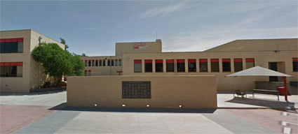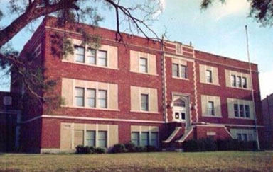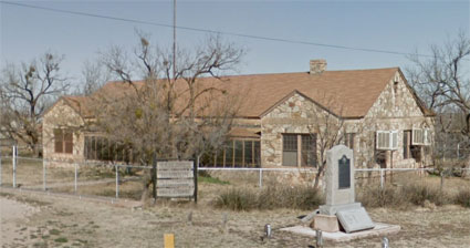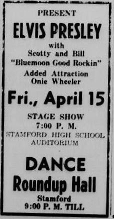 ![]() 観客数わずか150だった上記ゲーンズビル・アウル・パークでのライブの翌日、エルヴィス一行は西へ約310キロ離れたスタンフォードという街で、一晩2ライブをこなしておる。スタンフォードは1900年代初頭に2つの鉄道の始発点となったことで周辺地域との間で人的交流が盛んになり、1907年にはスタンフォード大学も設立された。その後鉄道路線は廃止され、大学も閉鎖されて大きな発展を迎えることがなく今日に至っておる。wikipediaの人口推移表によると、エルヴィスがやってきた1955年(50年代中期)あたりが歴代でもっとも人口が多かったが、それでも約5,000人ほどじゃ。左写真は、ハイスクール・オーディトリアムとランドアップ・ホールのダブルライブの新聞広告。 1955年4月15日、エルヴィスはまず午後7時からスタンフォード・ハイスクール・オーディトリアムに登場した。(右上写真)この学校のシンボル・ペットマークはブルドッグであり、野球、フットボール、バスケ等のスポーツチームのニックネームはすべてブルドッグス。“ハウンドドッグ”が発表された後のライブだったら、エルヴィスは替え歌 にして拍手喝采だったかも!?って、ライブ情報が無いのでショーモナイ空想に耽ってしまった(笑)************************************************************************************* スタンフォード・ハイスクールのライブ終了後、エルヴィス一行は西へ約3キロほど離れたラウンドアップ・ホールに移動して午後9時からライブをスタート。 ラウンドアップホールは、スタンフォードの街はずれの大平野地帯に造られた1930年から現在も続いておる「テキサス・カウボーイ・リユニオン(通称TCR)」敷地内南西角地にあるダンス・イベントホール。残念ながら当時の写真は見つからなかったので、TCRのFacebookに掲載されておる現在の写真を転載しておこう。(下写真3枚)