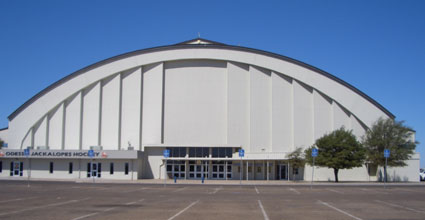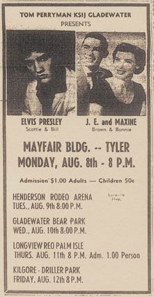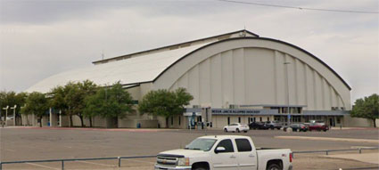 若きキングと成熟したキング両者の声を吸収した現存するライブ会場![]() ![]() 1955年に合計4回行われたオデッサ・ライブの内、4月1日のみこちらピース・エクター・カントリー・オーディトリアム(左写真)で行われておる。1954年にオープンしたこの会場の収容人員数は5,000人。当時のヤング・エルヴィスの集客力からするとデカ過ぎじゃ。 またこの会場では1976年5月30日に21年ぶりにエルヴィスのライブが行われており、この時はキング・エルヴィスの集客力からすれば逆に小さ過ぎじゃな(笑)当日は昼夜2回のライブであり、2回とも大入り満員で合計1万人以上の観客が集まった。1976年には会場名はエクター・カントリー・コロシアムと改称されておった。(左写真は1955年の新聞広告) 1955年、1976年ともにライブの詳細はネット上では見当たらないのが実に不思議じゃ。エルヴィス史上において、21年という時を隔てて同じ会場でライブが行われ、しかも会場自体が現存しておる例は少ないのに“思い出のキング・ライブ”的ショート・コラムすらお目にかかれない。来たる2026年は1976年から50年目に当たるので、オデッサでのキングの知られざる軌跡に光が当てられることに期待したい。 なお1976年5月30日にエルヴィスが宿泊したホテルで隠し撮りされた写真は、「バーチャル~テキサス州2025年補遺編 Area No.70」にて ご紹介しておるのであらためて御覧頂きたい。(下写真は1976年のライブ撮影。左側、中央がナイトショー、右側はマチネーの撮影。)