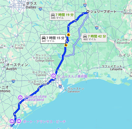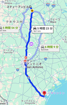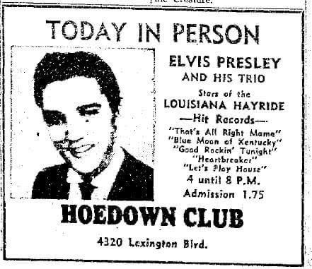 深夜720キロ移動&4時間出演!翌日は500キロ移動&三ヶ所でトリプル・ヘッダー!! コーパス・クリスティーは、テキサス州の南端に近い、メキシコ湾岸の街であり、住所上のコーパス・クリスティーは湾岸から内陸(南北)に向けて約170キロ、東西は最大約17キロの細長い地域が該当する。エルヴィスは1956年4月16日にコーパス・クリスティーのメモリアル・オーディトリアムでライブを行ってちょっとした騒動に巻き込まれておる。(「バーチャル~テキサス州2024年中編」Area No.56参照)その前年1955年7月3日には同地のホウダウン・クラブでライブを行っておる。 ホウダウン・クラブに関する情報はほとんどネット上にアップされておらんが、当日のライブ情報は少々ネット上で散見出来る。まず、前夜がルイジアナ・ヘイライド出演であり、ルイジアナ州シュリーブポートから西へ約700キロも離れたコーパス・クリスティーにエルヴィス一行は弾丸移動して、しかも広告によるとライブ開催時間は午後4時から8時まで!共演者の記載がないので、ブルームンボーイズ単独出演だったのであれば3ステージはこなしたことになる。(広告に記載されていない地元のミュージシャンも出演したという説有り!)前日深夜に車で長距離移動をして、コ ーパス・クリスティーで少々仮眠でもとった後に3ステージとは凄まじいハードスケジュールじゃ。さらに翌日は1日で別々の三ヶ所でライブというトリプルヘッダー!(下記Area No.77参照)若さとは時たま驚異的なエネルギーを発揮するもんじゃし、7月2日にキャッシュボックスのカントリーミュージック担当DJから「注目の男性シンガーNo.1」に選ばれてエルヴィスはご機嫌だったにしてもヤバ過ぎるテンションだったんじゃな! またこの日は、長時間出演をこなすために少なくとも通常のセットリストには無い2曲をエルヴィスは歌った。テッド・ダフィンズ・テキサンズの「Born to lose」とレイ・チャールズの「Mess arounds」じゃ。 既にエルヴィスのボディーガードとして同行していたレッド・ウェストによると、(恐らくこの日)エルヴィスは会場で“リズムを刻むだけでもいいから”と地元のミュージシャンの中からドラムを叩ける人物を臨時参加させたそうじゃ。