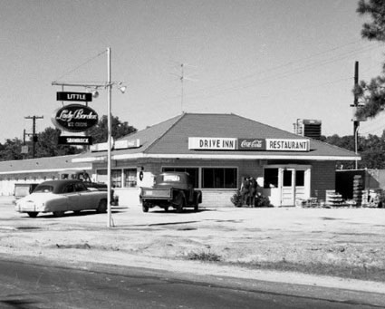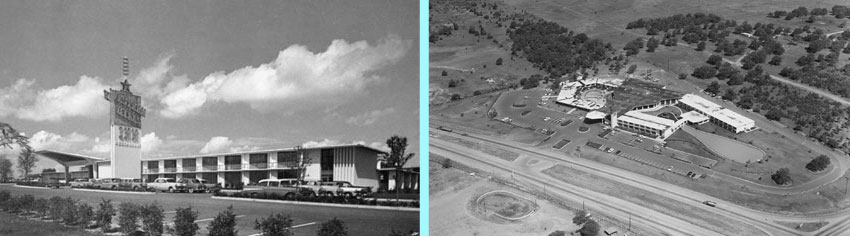たという説もあり!上写真右側は1950年代末期の空撮写真であり、かなり広大な敷地を擁したモーテルだったようじゃが、1980年代頃に閉鎖。建物は長らく放置されたままだったとか。現在跡地にはホームセンター、ファミレス、スタバなど複数の店舗が軒を連ねておる。(右写真ストリートビュー2024年8月撮影) |