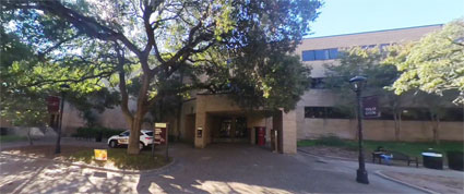 No.52参照)、昼のライブ地のココがスルーされている傾向が強いことじゃ。またサウスウエスト大学は全米でも有数の大規模な大学であり、各学部の教育レベルが大変に高くて優秀な学生さんが多いことから(第36代アメリカ大統領ジョンソン氏卒業大学)、学業最優先方針のイメージづくりのためか、(ちょっと堅苦しく)充実したスクール・サイトはキング・オブ・ロックンロールの痕跡すら入り込む余地など無い。意地悪く察すると、「かつてここでエルヴィスが~」といった事実を封印しておるような感じ!? EPCによると、地元紙のアーカイブにもライブ当日の新聞広告は見当たらず、50年代の建物の写真もサイト上では見つからない。エルヴィス研究者たちにとって情報がほとんど無い無い尽くし状態じゃ。左写真は長らくオースチン・スカイライン・クラブでのライブ写真とされておるが(Area No.52で掲載済)、最近はPinterestがサウスウエスト大学でのライブ写真としてアップしており、どちらの会場なのか識別する資料も無い状態じゃ。 天気パー太郎なファンが殺到して真面目な学生さんたちが迷惑するに違いないという大学側の配慮なんじゃろうか。詳細を知りたければ、事前に大学側から了承をとって取材するしかなさそうじゃが、そうした取材記事すら見当たらないので「取材お断り、動画撮影絶対禁止」なんじゃろうな。逆にエルヴィスのライブ軌跡の中でもっとも注目に値する会場と言えるかもしれない!?右写真はストリートビュー2024年10月撮影のエバンス・オーディトリアム。 |