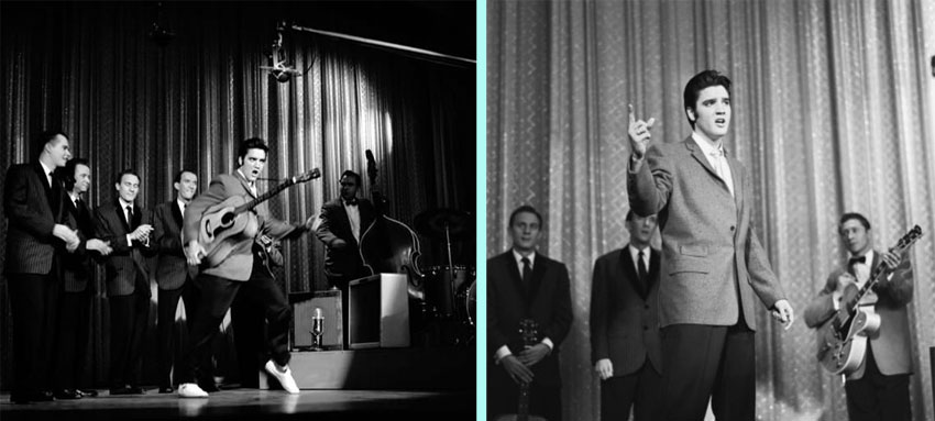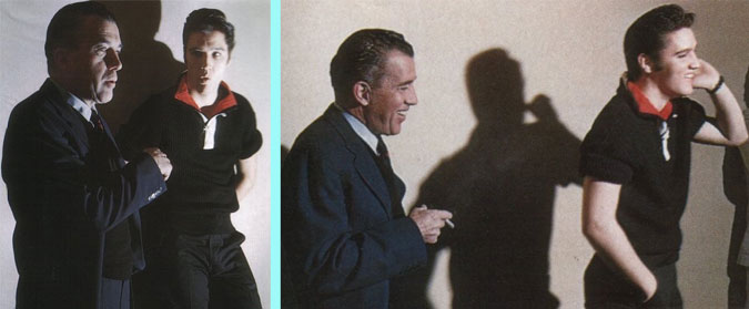 あの男(エルヴィス)は近いうちに必ずショービジネス界を席巻することになる!by トミー・ドーシー エルヴィスの記念すべき最初のニューヨークTV出演は、ご存知1956年1月28日午後8時から放映されたドーシー・ショーじゃ。同日朝には、エルヴィス、スコッティ、ビルの3人はノーラ・スタジオという場所に集合してショーのリハーサルを行ったとされておる。ノーラ・スタジオとは、当時ニューヨークで有数の機材と設備を備えた有名なレコーディング・スタジオであり、ドーシー・ショーで演奏をするビッグ・オーケストラもリハーサル&レコーディングで使用しておった。(上写真2枚は、1948年に発行された「audio record」なるメディに掲載されたスタジオ写真。左端下の人物は、スタジオのオーナーであるヴィンセント・ノーラ氏) まだニューヨークでは無名に近かったエルヴィスは、リハーサルに現れるとオーケストラのメンバーに随分と煙たがられたらしい。「髪を切ってシャワーを浴びてきたらどうだ」とあからさまに嫌悪感を示すメンバーもおったそうな。その中でたった一人だけエルヴィスに注目し、オーケストラ・メンバーをたしなめた男がおった。ショーのマスターであるトミー・ドーシーじゃ。「いいか。あの男(エルヴィス)は近いうちに必ずショービジネス界を席巻することになる」と予言をかました! 一説によるとドーシー・ショーはアメリカ南西部での視聴率がイマイチだったために、“メンフィスのエルヴィス”にドーシー氏が目を付けたらしいが、それもまたエルヴィスの凄い可能性を見抜いていたからこそじゃ。ドーシー氏は1956年11月に亡くなっておるので、生前最後に巡り合ったビッグ・アーティストがエルヴィスであり、その確かな鑑識眼によって自分の番組のフィナーレを飾ったとも言えるじゃろう。 エド・サリバンは視聴率稼ぎのために当初は仕方なくエルヴィスの出演を承諾し、スティーブ・アレンはエルヴィスをコケにするシナリオを用意して自らを世の中の大人たちに向けてアピールしようとしたことに対して、トミー・ドーシーだけはエルヴィス時代の到来を確信してTV番組に出演させたのじゃ。下写真3枚は1956年1月28日ドーシーショー出演時のエルヴィス。(映像はこちらから)