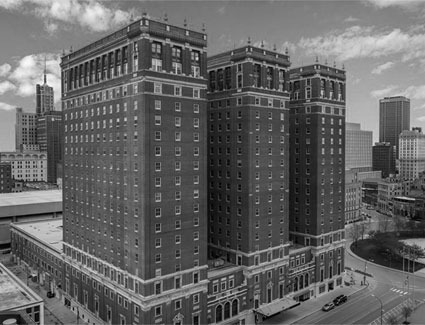 スタットラー・ホテル(Statler Hotel)をネットで写真検索すると、3連棟の建物(左写真)と1棟のみの写真がヒットする。創業後に増築されたのかと思いきや、バッファローの地には2つのスタットラー・ホテルが開業された歴史があった。1棟ホテルの方は1901年にバッファローで開催されたパン・アメリカン博覧会の来場者用に建てられた仮設ホテルであり、博覧会終了後に取り壊されておる。 もうひとつのスタットラー・ホテルは1923年に開業。エルヴィスが1972年に宿泊したのは、もちろんこちらのスタットラー・ホテルじゃ。 エルヴィスとは関係のないハナシじゃが、エルヴィスの泊った“スタットラー・ホテル第2号”は、客室300(後に450)を擁する創業当時としては大型ホテルであり、全室にシャワールームが完備されている初めての大型ホテルだったとのこと。 1920年代とは、“20世紀のコロナ”と称されるスペイン風邪明け(コロナ明け同様)の時代であり、大型ホテルの中にはまだシャワーがない部屋もあった時代でもあったのじゃ。わしは初めて知ったわい。 スタットラー・ホテルでのエルヴィスの写真は、ネット上では警備員と収まった左上写真の1枚のみ。エルヴィスがレッド系のコートを着ておる写真は他にあったかどうか不明であり、ひょっとして貴重な1枚かもしれない!? 上述の通り、バッファローから映画「エルヴィス・オン・ツアー」の撮影や録音がスタートしたので、相当な人数の製作スタッフたちもまたスタットラー・ホテルに宿泊したと思われるので、今後ホテル内でのあらたな写真や映像が発掘、発表される可能性はある。 スタットラー・ホテルは1980年代に経営が破綻し、その後度々建物のオーナーが変わり、ホテルとアパート兼業、オフィスビル業、娯楽施設業等様ざな経営が試みられたものの一向に安定しないまま今日を迎えており、2020年に上層階をアパート、下層階をカジノに改築する工事がスタートしたとされておる。(wikipediaより)現在Google-mapでは建物は「結婚式場」という表記がされておる。エルヴィスが宿泊した日の未発表映像でも公開されれば経営が一気に上向きになるかもしれない(笑)右写真ストリートビュー2022年10月撮影。 |
