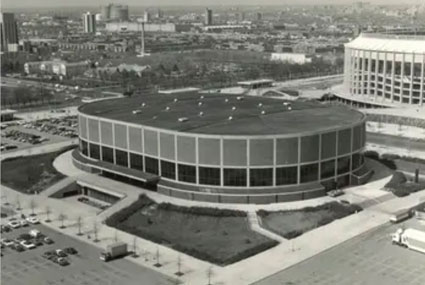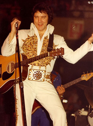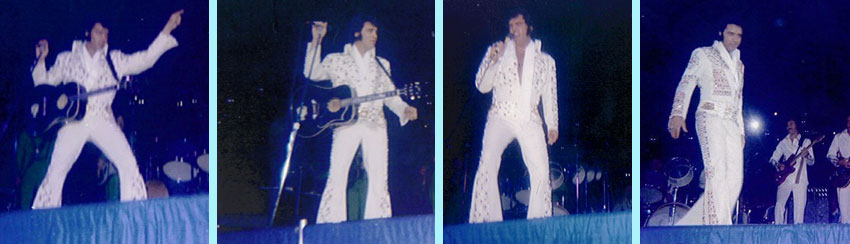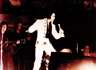 No.8参照)エルヴィスは“ゴールデン・トライアングル”の中心地に位置しておったシビック・アリーナ(左写真)で、1973年6月25、26日、そして1976年12月31日には「ニューイヤーズ・ライブ」を行っておる。特に後者はエルヴィスの最晩年の活動期間では屈指のクオリティと評された名ライブじゃ。とはいえ、まずは1973年のライブも素晴らしいレビューが残されておるのでそちらかまずご紹介しよう。(下写真4枚は73年6月25日もしくは26日の撮影)
