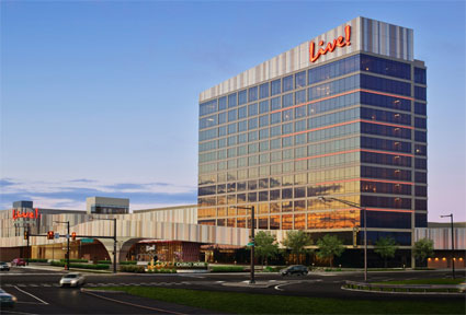 ![]() 21世紀になると周囲の土地再開発に伴いホテルは約半世紀の歴史に幕が降ろされて取り壊しとなった。現在はライブ・カジノ・リゾートという新しいビルが2024年に建てられておる。右写真は完成したばかりのライブ・カジノ・リゾートの全容写真。(ストリートビューはまだ未撮影。) |