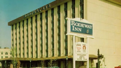2005年発売の写真集により新たに明らかになった宿泊先 上記シールバック・ホテルから一気にグレードが落ちてしまうが、こちらは1974年6月26日、1976年7月23日のルイビルでのライブの際にエルヴィスが宿泊したホテル。(左写真)70年代のルイビルでの宿泊先は長らく一般的には不明だったが、2005年に出版された豪華写真集「Elvis Destination Luisville June 26 1974」の中でロードウェイ・インでのショットが紹介されたことで宿泊先が明らかになった。(後に76年もこのホテルが利用されたことが断定された) またこの写真集のプロモビデオも作成されており、その中には当時地元TV番組で放映されたライブ当日のエルヴィスの様子がレポした映像も含まれており、エルヴィスが終始笑顔で機嫌が良く、ライブも好調だった様子がうかがえる。 左写真2枚はその映像の中でホテルからライブ会場へ向かう際の静止画じゃ。ネット上で紹介されておる写真集内のショットには、エルヴィスが翌日ロードウェイ・インをチェックアウトする際らしき写真も掲載されておるようじゃ。(左下写真右側) 参考までに、2005年発売当時のブック・レビューを転載しておこう。 「1974年6月のツアーはエルヴィスの最高のツアーのひとつであり、ルイビルのコンサートはそのツアーのハイライトのひとつでした。その夜、エルヴィスは新しいまばゆいばかりのピーコック・スーツを着て、見た目も声も素晴らしかったです。これらの写真を撮影したファンは、会場で一番良い席 /最前列中央に座っていたため、その夜の思い出が彼女の写真に新たなテンションを与えています。また、パーカー大佐のオフィスの資料、新聞の切り抜き、レビューなど、たくさんの記念品も収録されています。当時エルヴィスのベース奏者だったデューク・バードウェルは、この本のために内部の思い出をいくつか書き留めており、彼の洞察と観察にはきっと驚かされるでしょう。この本は最初から最後まで楽しく、本当にその時代を思い出すことができます。 なお初版本には、1974年4月の自宅録音である「Spanish Eyes」と「Let Me Be The One」を収録した特別なビニール・シングルが付 属しています。これらは実際のカセットから取られたものです。エルヴィスは明らかに楽しんでおり、歌詞を何度か面白く変えています。笑顔になる心温まる内容です。」右写真はストリートビュー2024年6月撮影。この建物はロードウェイ・インが再利用されておるのか、撤去した後に建て替えられたのかどうかは不明じゃ。 |