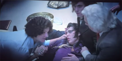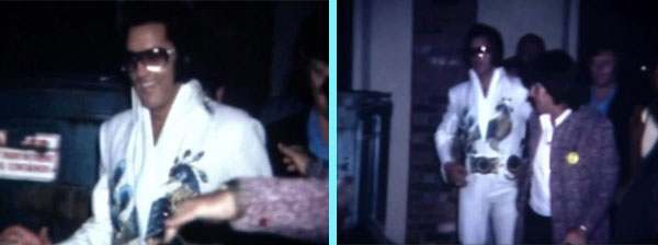 フリーダム・ホールでのライブは「バーチャル~ケンタッキー州2022年編」で詳しくご紹介したが、この度の調査で、ラストライブ(77年、上写真3枚)に対して貴重な証言となる投稿をネット上で発見したので追加情報として記載しておこう。 映画「エルヴィス」の中で、ツアー地獄とオクスリの乱用からエルヴィスがライブ前にぶっ倒れ、そこにパーカー大佐がやって来て「重要な事は、今夜この男がステージに立っていることだ」と周囲にげきを飛ばすシーンを覚えておる方も多いじゃろう。(左下写真。映画「Elvis」から)あのシーンは実話であり、実際にアクシデントが起こった日時と場所がこの日、この場所だったというのだ。以下、投稿をそのまま転載しよう。 「1977年5月21日、私はエルヴィスのコンサートを、4 回目で最後となる鑑賞をしました。私は16歳で、3列目に座っていました。映画では、(側近者が))エルヴィスの横にひざまずいて、彼の頭を冷たい水に浸すシーンがありました。彼は熱を出して、とても具合が悪かったのです。ラリー・ゲラーの言うとおり、パーカーは彼の横を通り過ぎ、エルヴィスの世話をしている人々に「さあ、私の言うことを聞きなさい。唯一大切なことは、あの男が今夜ステージに立っていることだ。私の言うことが聞こえるか?