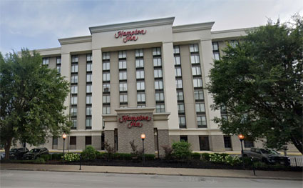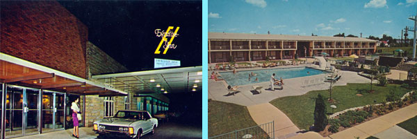 1977年5月23日、ケンタッキー州最後の宿泊先 1977年5月23日、ルイビルで6度目、フリーダムホールで4度目、ケンタッキー州での最後のライブとなったこの日、エルヴィスは三度(四度?)別のホテルのエグゼクティブ・インに宿泊した。(左写真)何故ルイビルでホテルを何度も変えたのかは定かではないが、エグゼクティブ・インがルイビル国際空港の滑走路に隣接した場所にあったことを考えると、当日未明(深夜)にリサ・マリー号でルイビル空港に到着したため、休憩時間を少しでも長く確保するために空港に近いこのホテルが選ばれたのであろう。(翌日のメリーランド州のライブのための長距離移動も考慮されたとも想定したが、エルヴィスはライブ終了後にエグゼクティブ・インには戻ることなく空港へ直行しておる。下記「ルイビル・インターナショナル・エアポート」参照」) 下写真右側は、「Elvis Luisville Kentucky」で画像検索するとヒットしたが、ネット上でガードが厳しく設定されておるようでサムネイルしか見られず詳細は不明じゃが、エルヴィスのジャンプ・スーツ、お顔の具合、背景等からエグゼクティブ・インでの撮影と思われる。特に上写真左側と下写真右側の外壁やガラス張りのエントランスは同一の場所に見える。(下写真左側、中央は撮影日と場所のクレジットあり)