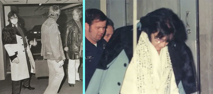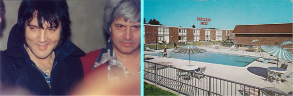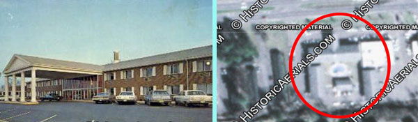 ネット上で確認出来るホテルでのエルヴィスの写真は2枚あり、左写真上段左側は当日未明(午前1時頃)ホテルに到着した様子。さらに左写真下段左側は、同日夕方ガレット・コロシアムに向かうためにホテルの駐車場に現れたエルヴィス。 この2枚の写真は同日の撮影とされておるものの、エルヴィスの服装が異なっておる。 左写真下段右側はライブ終了後ガレット・コロシアムでの撮影であり、エルヴィスが羽織っておるコートがホテルを出る時に着ておるコート(左写真下段左側)と同じであることが分かる。エルヴィスは珍しくステージ衣装姿ではなく私服でライブ会場へ向かったということになるな。 1970年代のモンゴメリーのラマダ・インに関する情報が現在ネット上にほとんどなく、所在地情報も複数あって特定は出来ない。複数の所在地をHAC(アメリカの空撮サイト)で各々確認したところ、現在営業中のキーウェスト・インというモーテルになっておる所在地が1975年の空撮写真においてプールが写り込んでおり、また21世紀の初頭まで「ラマダイン」として営業していたという情報もあり、こちらを現在のところエルヴィスが1977年2月16日に宿泊したモンゴメリーのラマダ・インの可能性が高いとしておく。(Google-map上では、現在閉業表示)) |