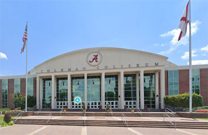 エルヴィスのタスカルーサにおけるライブは、1971年11月14日、75年6月3日、76年8月30日の3回行われておる。会場はタスカルーサ・メモリアル・コロシアム(左写真)。コロシアムはアラバマ大学の広大なキャンパス内にあり、別称“アラバマ・ユニバーシティ・フィールドハウス”と呼ばれることもある。更に70年代当時アラバマ州内の屋内イベント会場で最大のキャパを誇っていたからか、“アラバマ・コロシアム”とも呼ばれておった。私設エルヴィス・サイトの中にはこの2つの別称の方で会場名が表記されておる場合も少なくないので要注意。1971年11月のライブ・ツアーは、エルヴィスにとってはライブ活動にカムバック以来2度目のツアーであった。“カムバック”とはいえ、1969年からのライブ会場の大半はラスベガスのインターナショナル・ホテルであり、1971年も1月26日から2月8月まで18回、8月9日から9月6日までは47回ものラスベガス・ステージをこなしておる。 この11月のライブツアーは5日から16日までアメリカ北東部および東海岸地域の11都市で行われ、マサチューセッツ州ボストンやペンシルベニア州フィラデルフィアといった大都市を巡回した。タスカルーサだけは大都市ではなかったが、恐らく会場の収容キャパ(約16,000人)が大きかったことがセレクトされた要因だったのじゃろう。