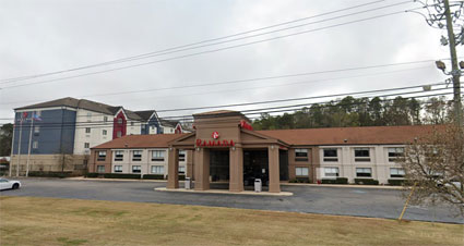 地元メディアの調査でようやく明らかになった、1976年タスカルーサ宿泊先 70年代に3度タスカルーサを訪れたエルヴィスが、最後の76年8月30日のライブの際に宿泊したホテルがラマダ・インとされておる。宿泊先は長らく不明になっておったが、近年タスカルーサの2つの地元サイトにおいてラマダ・インと“ほぼ断定”しておる。左写真左側が70年代当時の建物。他に“Ramada Inn Downtown in Tuscaloosa”と表記された写真も見つかったがこちらは高層ホテル。エルヴィスが泊まったのは「215号室」とされておることから低層ホテルを利用したと思われるので、モーテル・スタイルの低層ビル(上写真左側)の方が正しいと判断するべきであろう。(※左写真は、1976年8月30日のタスカル―サ・ライブでの撮影) Wyndamなるホテルの所在地をHAC(アメリカの空撮サイト)で確認したところ(上写真右側-赤丸部分)、1981年の空撮写真にRamada-Innらしき建物とその南側に低層モーテル特有のプールらしきエリアが写っておる。エルヴィス一行が利用したラマダ・インは現Ramada