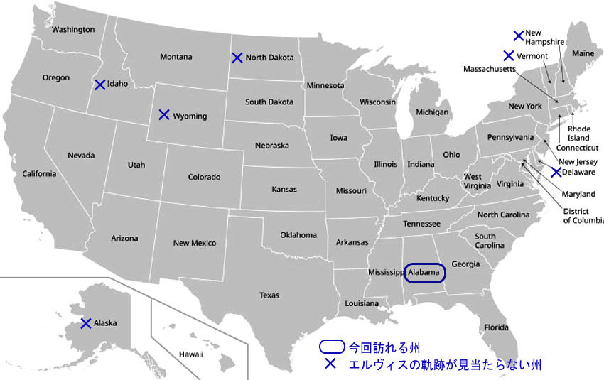 モンゴメリーは地図上で見るとアラバマ州のど真ん中に位置する同州の州都じゃ。エルヴィスは1955年12月3日、RCAと契約を果たした直後にモンゴメリーのアラバマ・ステイト・コロシアムで、「タレント・サーチ・オブ・ザ・ディープサウス」というタレント・コンテストのステージショーの中でのゲスト出演をしておる。(バーチャル~アラバマ州2022年編Area